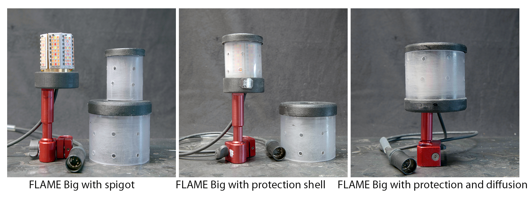 FLAME Big soft diffusion Ø 60, H 78 mm _12VDC – 24W _360° Act as a mini China Ball OPTIONAL : CARBON FIBRE SUPPORT FOR Tailored to fit into existing paraffin lamps and other bigger light sources